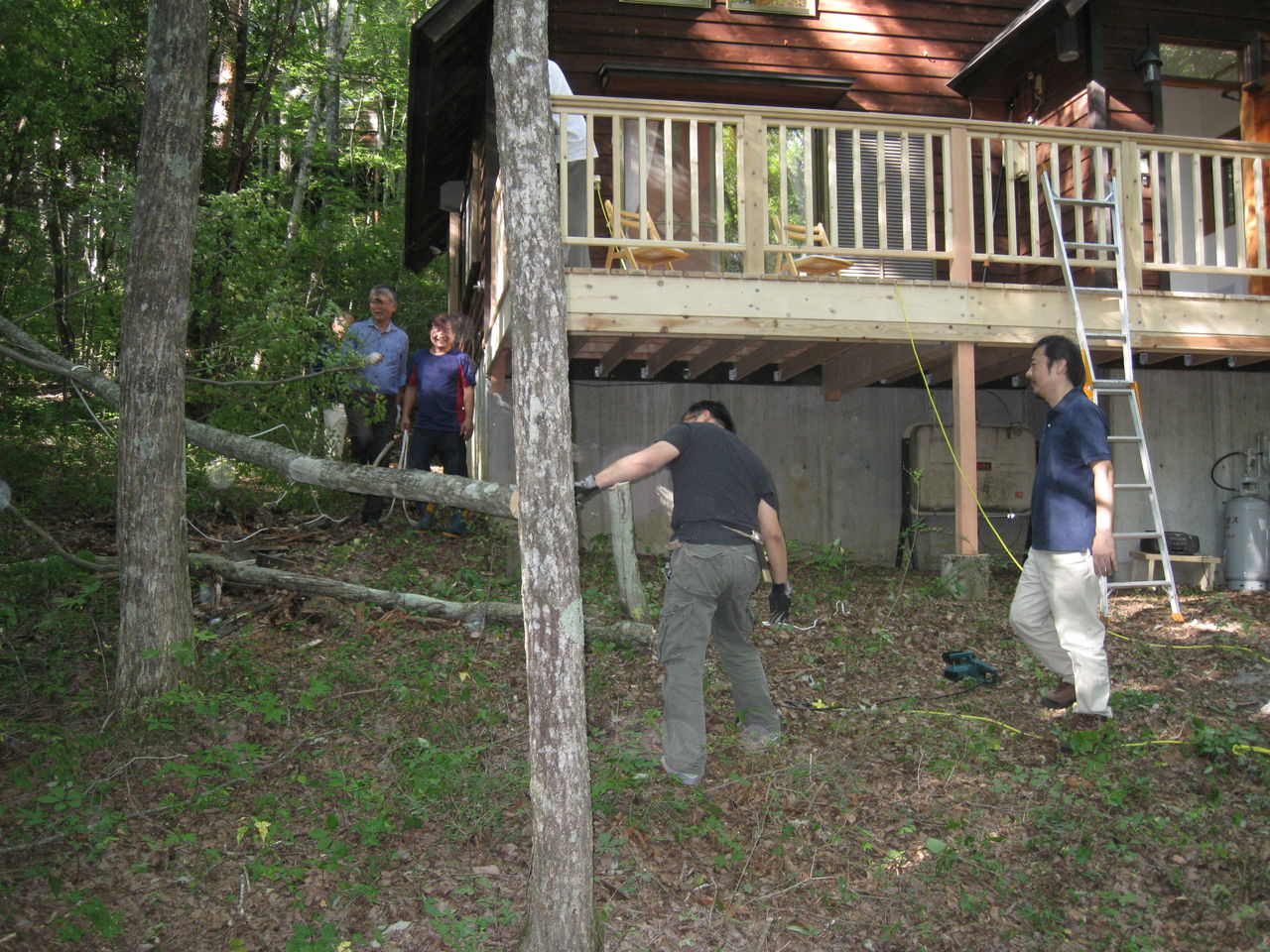 山へ登ろう 2013年10月03日 私の職場では、山登りが密かなブームです昔のワンゲル部員達が、仲間を募って北へ東へ、日帰りで弾丸登山行さわやかな秋の一日せめて私もハイキング・・・いえいえ、結構な山登りをさせていただきました初日は横井さんの別荘の除伐から 伐倒方向よし! 完璧ですでも、切っちゃったのは、奥様の物干し台だったかしら?二日目は御嶽6合目"中の湯"から8合目"女人堂"を往復下山後、バス停でくつろぐメンバーの顔林さんのご配慮もあって皆さん、楽勝のコース設定でした・・よね?ん!? 誰か足りないよ さて お次の投稿は浅田さんの番ですよ〜だから 早く降りてきてくださいみんな待ってますよ〜。by kato.