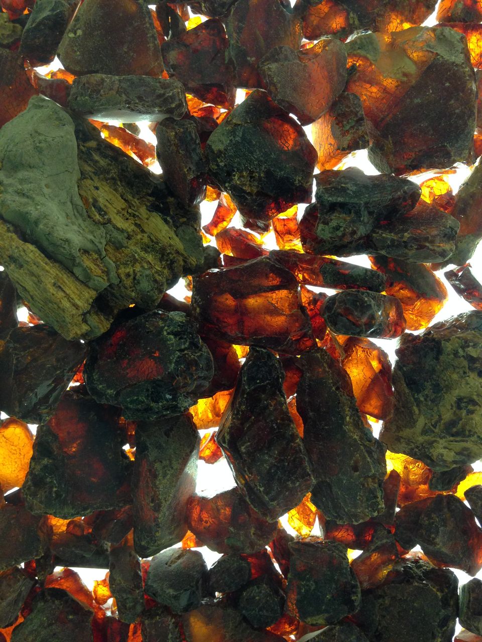 ②琥珀の中で眠る昆虫。化石博物館。