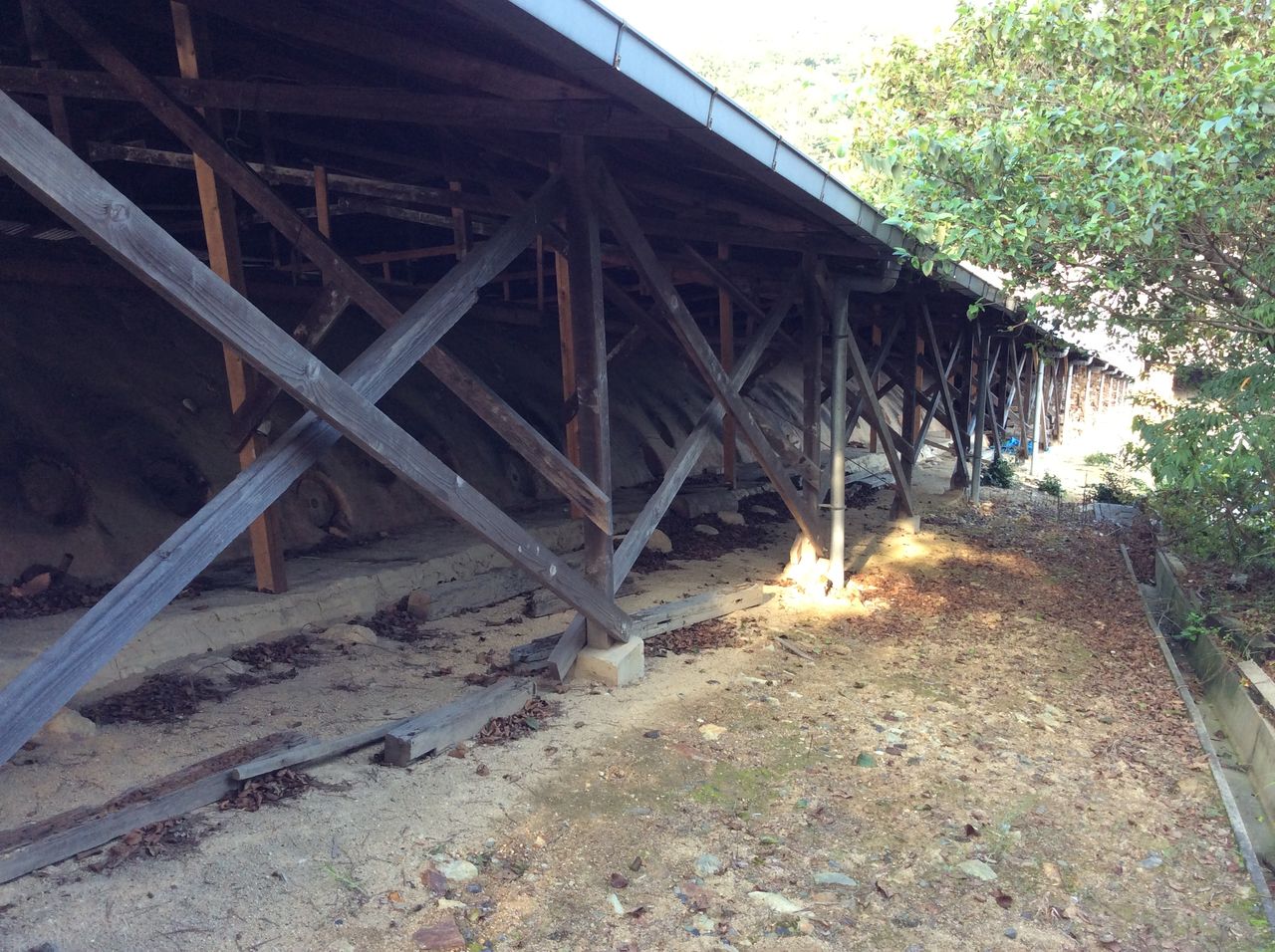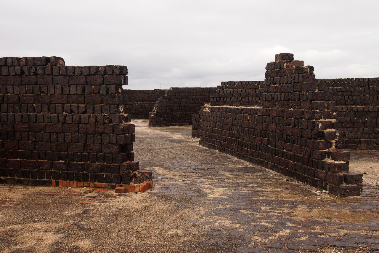 これは大窯のトンネルです。ひとつひとつの壷の中には、小さな陶器が入っています。