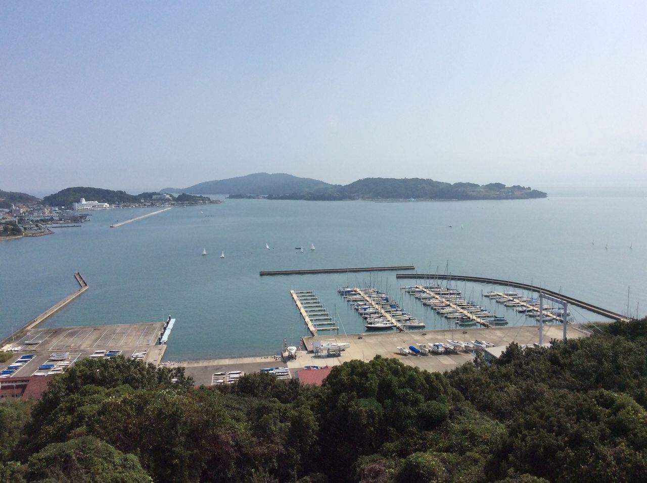 シーマンをチェックアウト後、チャーター便に乗船し、宝伝港に到着。クルマに分乗し、森下さんの先導で牛窓の練り製品の店に寄って、買い物。ホテルでランチの後、牛窓オリーブ園へ。広いオリーブ園を散策し、展望台へ。すばらしい景色です。