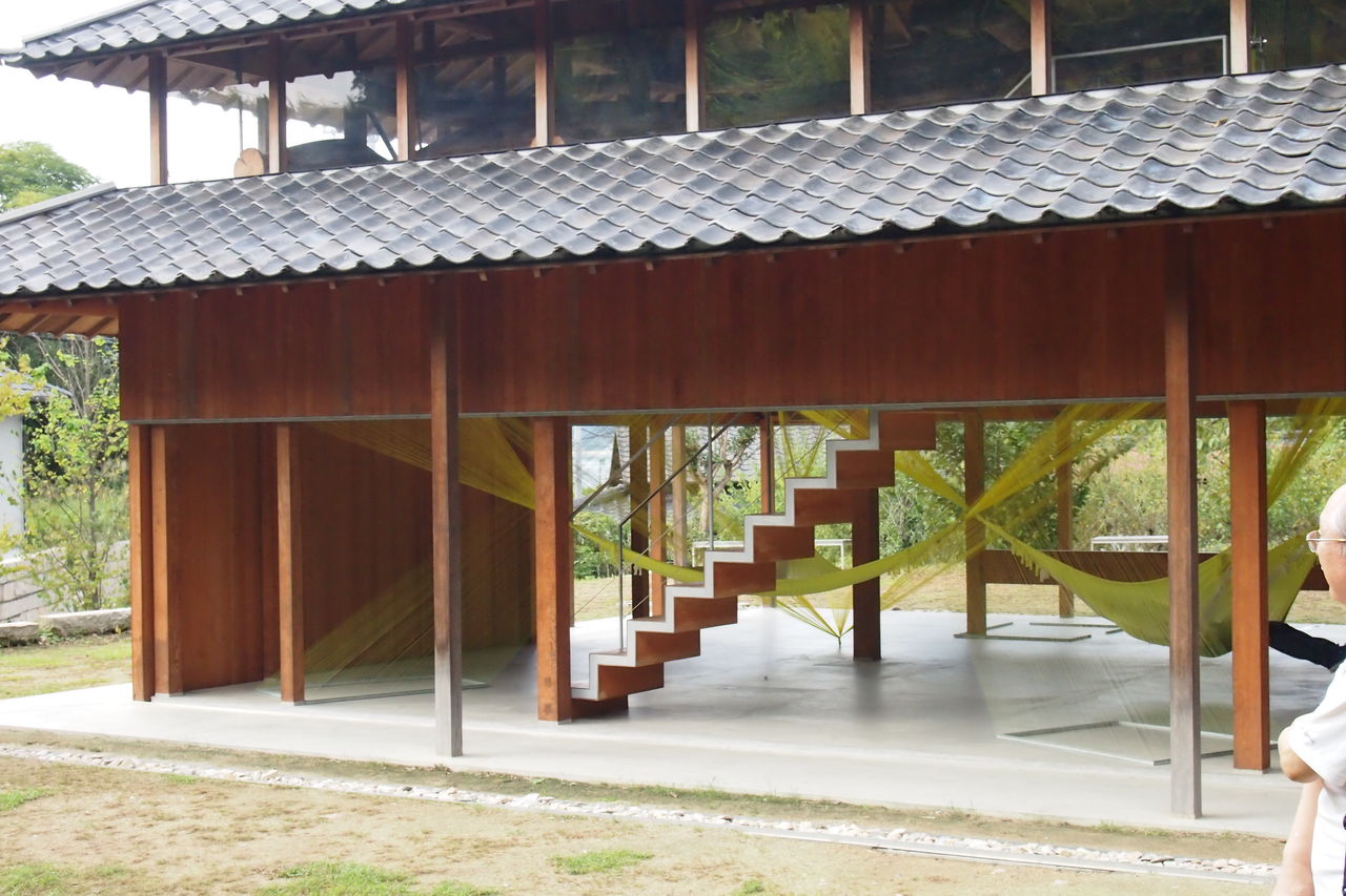 さて、ナビに従ってくねくねした細道を行き、なんとか宝伝港に到着。複雑研初参加の宮田さんと合流。13:45出航の定期船「あけぼの丸」に乗船し、数分で犬島に到着。犬島チケットセンターで犬島製錬所美術館と「家プロジェクト」の共通チケットを購入し、シーマンへ。コテージに荷物を降ろして島を散策。