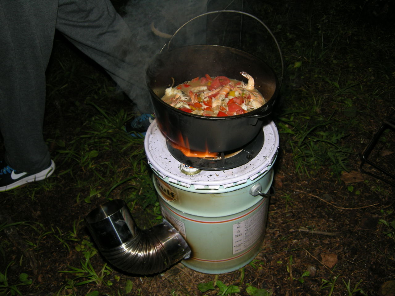 夕食・宴会は、バーベキュー(肉、さんま、野菜)、ダッチオーブン料理(パエリア)などを堪能。